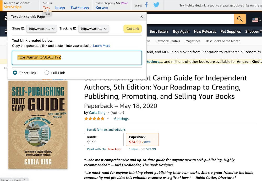 Now, every time somebody clicks on that link and purchases my book, I get just a little bit more money. Even if they don’t buy your book, they may click over to order other things on Amazon, and you are going to make some cash from that!
