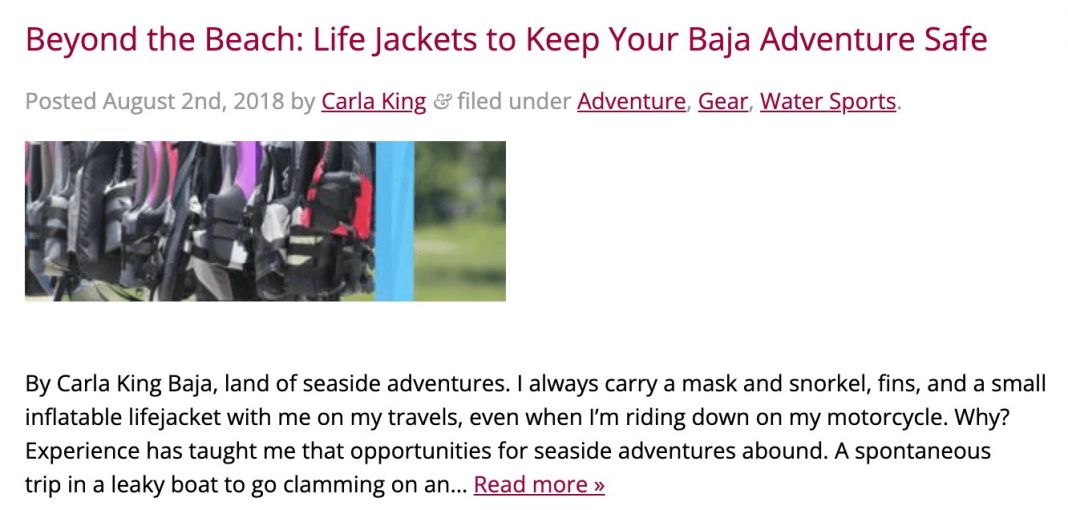 I also used Amazon links in my Discover Baja column. For example, in one a post I recommended that people take their own of PFD (Personal Flotation Devices, aka lifejackets) with them. Most of the links came from Amazon. If you write a column or contribute an article for someone else, make sure they are good with that.